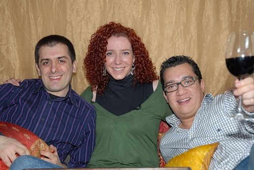 Foto del archivo de Vinustv donde aparece Eduardo Benito, amigo de Facebook, Gema Moreno la onductora del programa y Edgar.