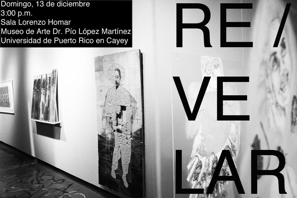 La exposición se le dedica a los artistas Carlos Irizarry y Joaquín Mercado quienes elaboran los precedentes de un arte gráfico que incorpora la fotografía a los efectos pictóricos propios de la serigrafía. Las obras de estos maestros son ejemplo de un arte gráfico de síntesis lírica en el caso de Mercado y de narrativa alusiva a la crónica periodística y al acontecer cultural en el caso de Irizarry. Re/velar incluye también obras de artistas que han desarrollado un lenguaje artístico donde la fotografía es elemento esencial en la propuesta gráfica. Entre ellos Aixa Requena, Abigail Pantoja, Rafael Miranda, Ramón Miranda Beltrán, Jesús Gómez, Zinthia Vázquez, Javier Maldonado O`Farril y Elsa Meléndez. La invitacion, su diseño es cortesía del artista Ramón Miranda Beltrán, la foto es de Jonathan Berríos. — Que tenga un excelente día./Have a great day. Web portfolio: http://www.ramonmirandabeltran.com
